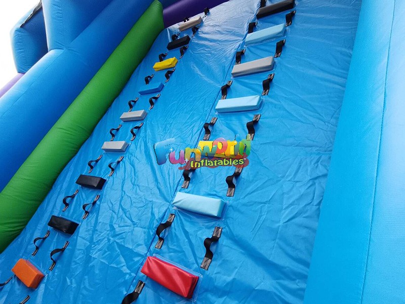 يُعد جدار التسلق الشاهق أبرز ما يميز معظم الدورات، إذ يُجبر المتدربين على اختبار قوتهم وقدرتهم على التحمل قبل الوصول إلى القمة. وعند بلوغ القمة، يُكافأ المشاركون برحلة مثيرة إلى أسفل منحدر شديد الانحدار، غالباً ما يكون عمودياً. زحليقة هوائية قابلة للنفخ، مما يؤدي إلى منطقة هبوط ناعمة، ونضيف مشابك أمان على كلا الجانبين لتأمين أنظمة التثبيت من أجل الاستقرار.