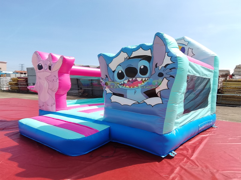 غرزة منزل نطاط قابل للنفخ يُجسّد مفهوم ملعب النجوم الفريد. ألوانه النابضة بالحياة، وشخصياته الكرتونية ثلاثية الأبعاد، وتصميمه الهيكلي المبتكر، تُضفي على ملعب الأطفال لمسةً بصريةً أخّاذة. تتميز درجات المدخل بنمط مخطط باللونين الأزرق والوردي، مما يُضفي لمسةً من التناغم على لوحة الألوان ويُضفي على الأطفال شعورًا بالطقوس عند دخولهم. تضمن النوافذ الشفافة في الجدران الجانبية الشفافية أثناء اللعب، وتُضفي لمسةً ساحرةً تُشبه القلعة على التصميم العام. بمجرد نفخه، يصبح الشكل العام كاملًا وثلاثي الأبعاد، وتضمن الطباعة النابضة بالحياة والمُفصّلة على السطح تكاملًا سلسًا بين ستيتش وأنجي. يُجسّد كل خط ولون بدقة أسلوب الرسوم المتحركة، مُجسّدًا عالم ليلو ستيتش المُبهج داخل هذه القلعة النطاطة.