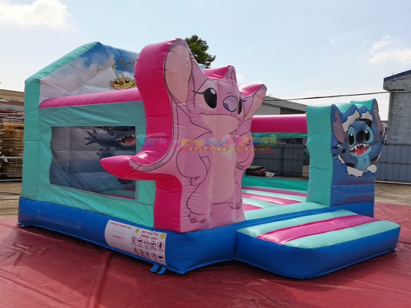 حفلة بين النجوم السعيدة مع ستيتش وأنجل. هذا البيت النطاط الداخلي القابل للنفخ يُبرز جمال ستيتش وأنجل، مما يسمح للأطفال بالقفز بحرية على الترامبولين.