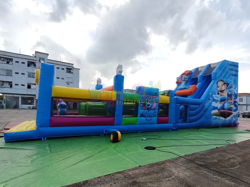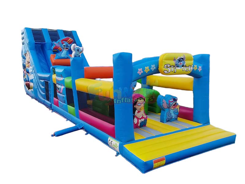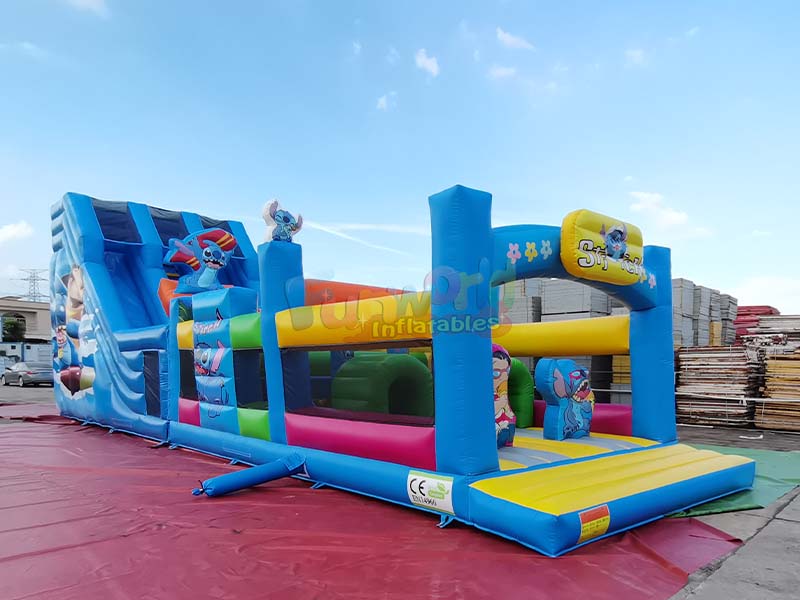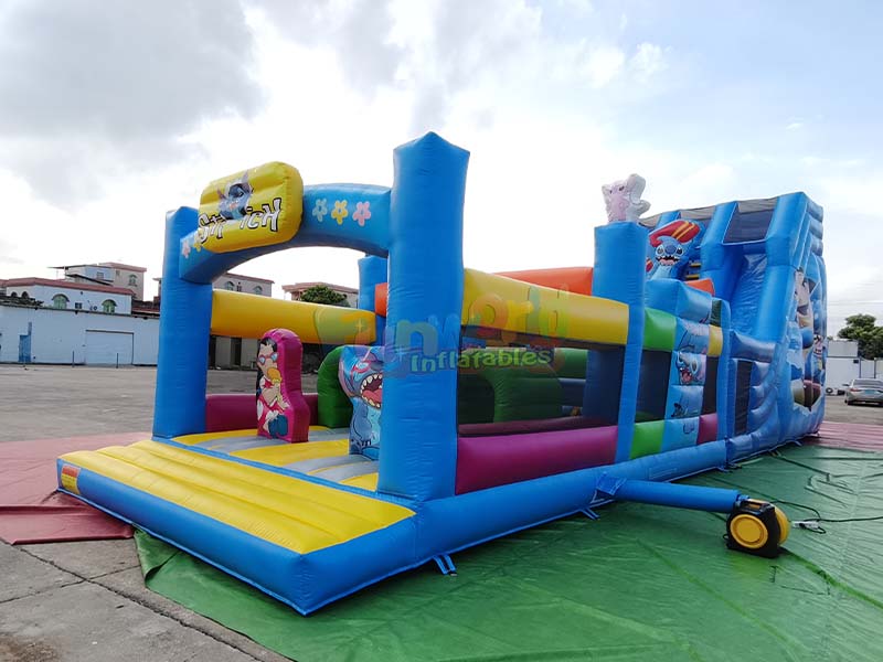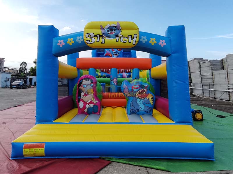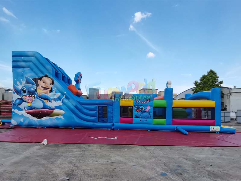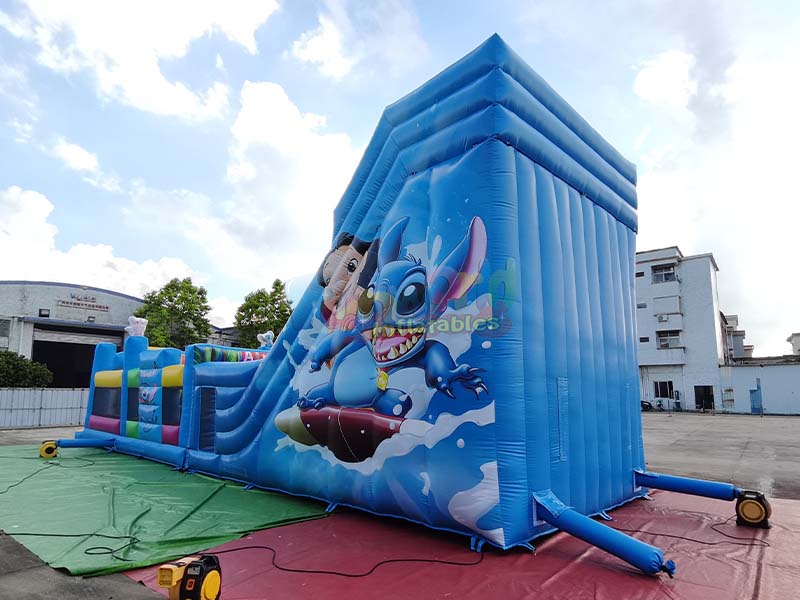 منزلق مائي كبير قابل للنفخ يجمع بذكاء بين الألوان الزاهية لتأثير بصري قوي. شكله المنحوت ثلاثي الأبعاد، مع مجموعة متنوعة من مسارات العوائق الممتعة، وشخصيات ستيتش الجذابة المنتشرة في أرجائه، يخلق تجربة مرحة وحيوية. يخلق هذا المزيج المتناغم من الألوان والأشكال تجربة بصرية حيوية وخيالية، تحفز اهتمام الأطفال بسهولة.