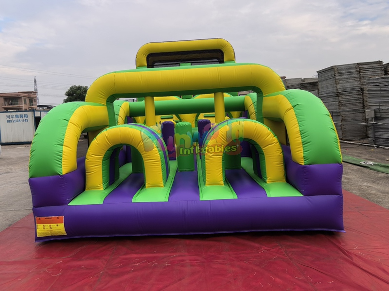 مضمار عوائق قابل للنفخ تجاري. يتميز بمنزلقات مزدوجة مزدوجة المسار بارتفاع 23 قدمًا، وسيحتاج المشاركون إلى التغلب على جدار تسلق صخري ممتع للوصول إلى القمة قبل تجربة السباق المثير إلى الأسفل على المنزلقات المزدوجة التي تبدأ بهذا المنزلق المزدوج الذي يبلغ ارتفاعه 23 قدمًا لإنهاء سباق مضمار العوائق في أسفل المنزلق!