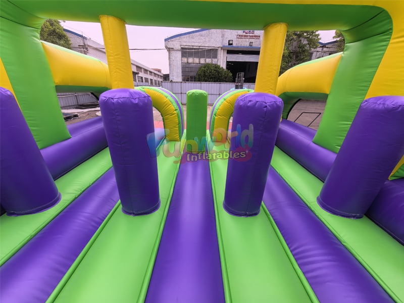 بيت القفز القابل للنفخ للكبار في الفناء الخلفي، والذي يضم مسارًا مليئًا بالعقبات، هو معلم جذب ديناميكي وجذاب مصمم خصيصًا للفعاليات والحفلات وأنشطة بناء الفريق. يتميز بألوانه الجذابة التي تتراوح بين البنفسجي الداكن والأخضر الليموني والأصفر الفاتح، مما يوفر تحديًا بصريًا مثيرًا للمشاركين من مختلف الأعمار.