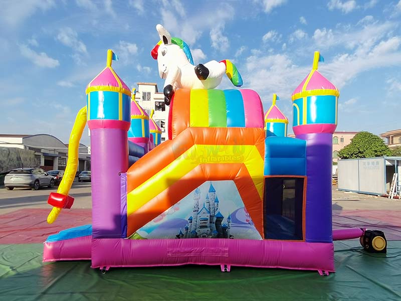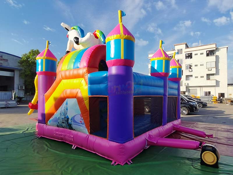 5x5x3.5mبيت نطاط قابل للنفخ مع مجسم وحيد القرن، مناسب للحديقة الخلفية