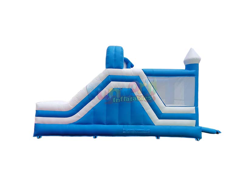 هذا مجموعة قلعة القفز الخارجية يخلق عالمًا ساحرًا للعب للأطفال. يتميز بمنطقة نابضة بالحياة بتصميم مشرق ومرح، ومنزلقة قابلة للنفخ أنيقة باللونين الأزرق والأبيض. تُكمل عناصر هيكلية فريدة، مثل الترامبولين، المنزلقة لخلق مساحة لعب نابضة بالحياة. يمكن للأطفال القفز والتزحلق والانغماس في منطقة مغامرات الجليد والثلج الساحرة هذه، عالمًا من المرح والإثارة.