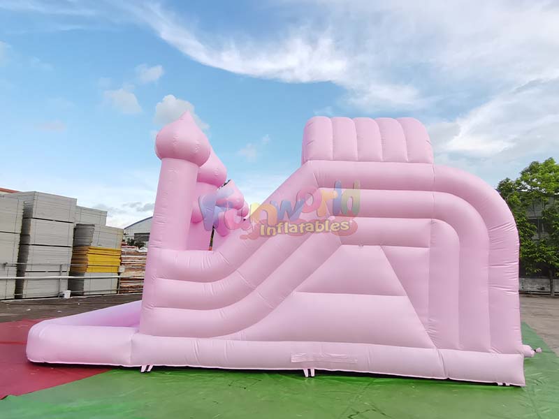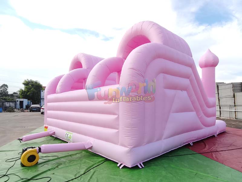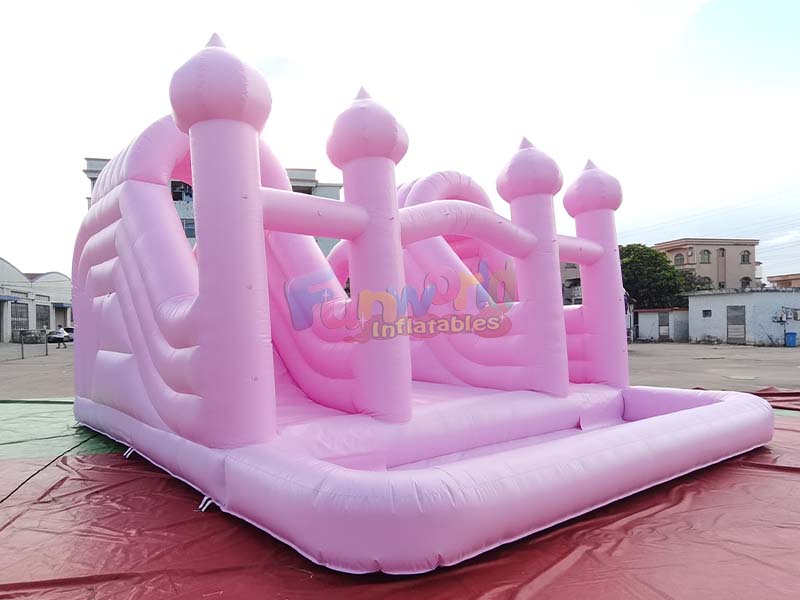 8Lx7W(m)قلعة نطاطة قابلة للنفخ بلون وردي فاتح مع زحليقة مزدوجة وحوض كرات
