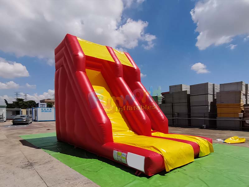 منزلق قابل للنفخ خارجي ألوان نابضة بالحياة تجذب انتباه العين فورًا. يتميز الهيكل الكبير ثلاثي الأبعاد بمنحدر أصفر شديد الانحدار ولكنه أملس، محاط بحواجز جانبية حمراء زاهية قابلة للنفخ تضمن السلامة وتعزز لوحة الألوان النابضة بالحياة. صُممت كل من المنصة العلوية ومنطقة التبطين السفلية باللون الأصفر، بينما يلتف اللون الأحمر حول الهيكل الرئيسي، مما يمنحه مظهرًا ثلاثي الأبعاد مذهلًا. بمجرد نفخها، يصبح شكل الزحليقة ممتلئًا وحيويًا. تجذب ألوانها النابضة بالحياة وشكلها ثلاثي الأبعاد انتباه الطفل بسهولة وتصبح محور الاهتمام.